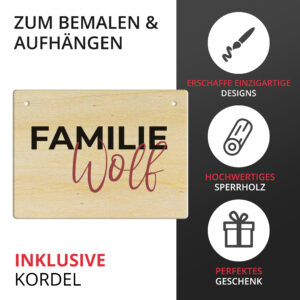 Das Holzschild bietet eine stabile Basis und eignet sich perfekt zum Aufhängen und Bemalen. Das Schild besteht aus einem hochwertigen Holzmaterial das leicht, strapazierfähig und langlebig ist. Außerdem ist es leicht zu bemalen und noch einfacher zu beschriften.