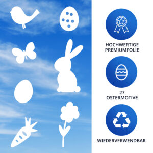 Das 27 teilige Fensteraufkleber Set in weiß ist leicht anzubringen und rückstandslos entfernbar. Die Fensteraufkleber haften statisch am Fenster und sind somit wiederverwendbar. Sie können die Aufkleber beliebig oft platzieren und neu gestalten.